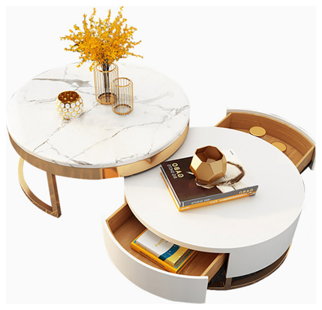 43+ Modern Round Coffee Table With Storage Lift-Top Wood Coffee Table With Rotatable Drawers PNG